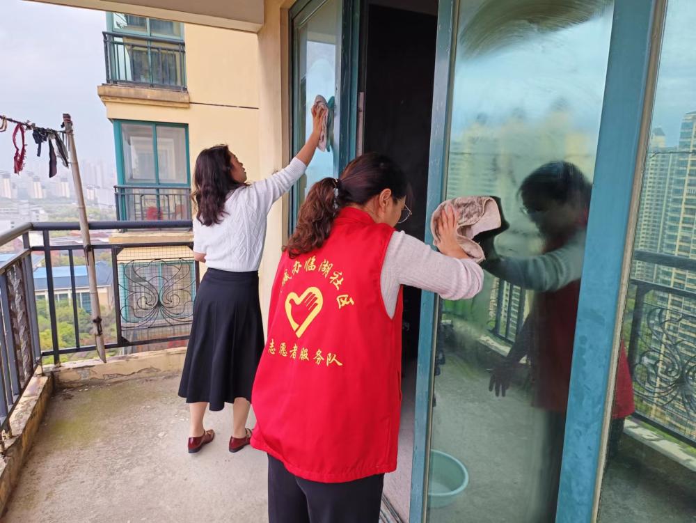 志愿者们来到该户老人家中,详细询问了老人近期的身体和生活情况,并为她送来一些日用慰问品,叮嘱她遇到困难要及时与社区联系,切实让老人感受到关怀和温暖。由于老人患有心脏病,眼睛又不太好,行动不便,导致家中凌乱、杂物较多,志愿者们为老人清洁地面、清理杂物、擦拭和分类整理生活用品,经过志愿者们的努力,老人家中变得整洁利落、焕然一新。