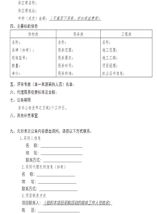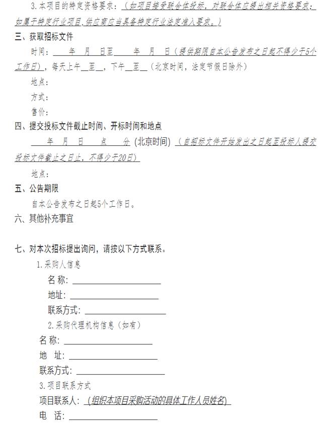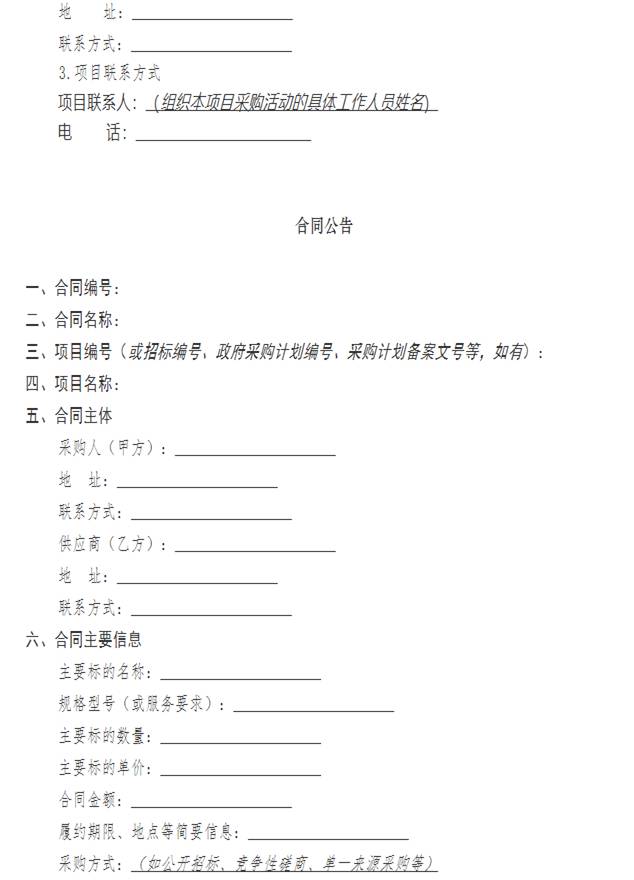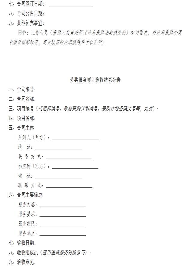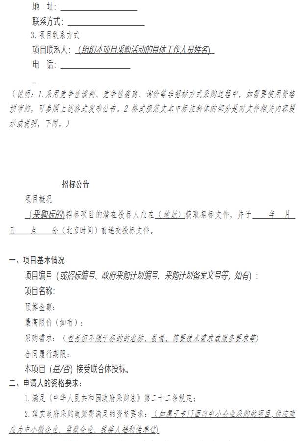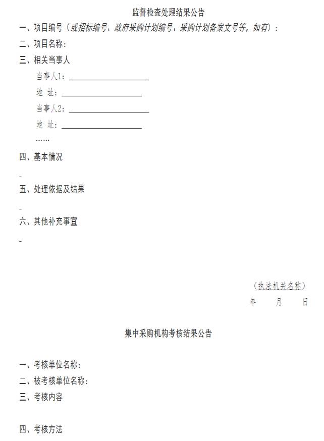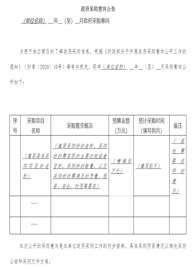 各部门、各地区要高度重视政府采购信息公开工作,督促指导采购单位和采购代理机构自2020年7月1日起按照本格式规范编制发布政府采购信息。执行中如遇政策问题,请及时向财政部国库司反馈。