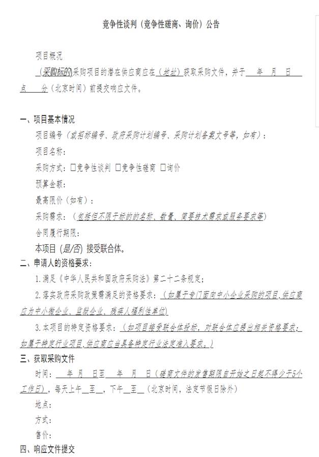 为规范政府采购公告和公示信息发布行为,提高政府采购活动透明度,财政部研究制定了《政府采购公告和公示信息格式规范(2020年版)》,现印发给你们,请遵照执行。