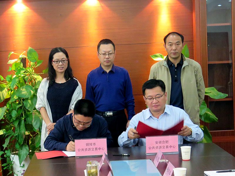 本次签约标志着铜陵、合肥两地在安徽省内率先实现跨区域公共资源交易平台资源整合。签约仪式前,合肥市公管局领导一行参观了我市公共资源交易市场,并就公共资源交易平台建设及招标采购活动中的难点问题与我中心进行了座谈交流,就进一步发挥双方资源优势通力合作等事宜达成初步意见。